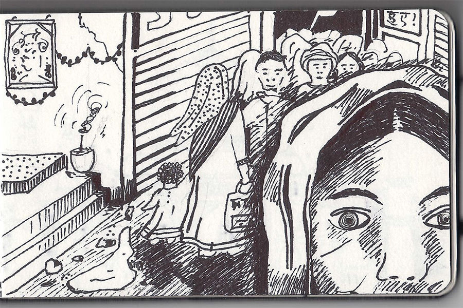 Some illustrated impressions of our journey through Asia. Skyline of Dubai - Market in Amritsar - View of the mountains in Manali - the Taj Mahal - Bag e Fin Gardens...