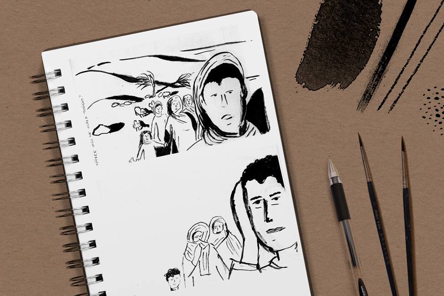 Das Schicksal von Millionen syrischer und irakischer Flüchtlinge berührt mich tief. Ich habe diese Skizzen gemacht, mit dem Gedanken, was wohl Mütter und Väter über die Zukunft ihrer Kinder denken mögen, während...