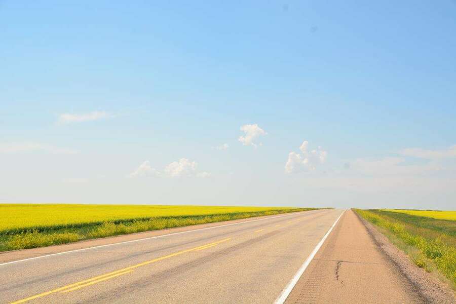 Behind Ontario the hills, the dense forests and the lakes suddenly give way to wide fields of rapeseed, light birch forests and small ponds, the landscape becomes flatter and flatter. Also, we find a new companion to drive through Manitoba.